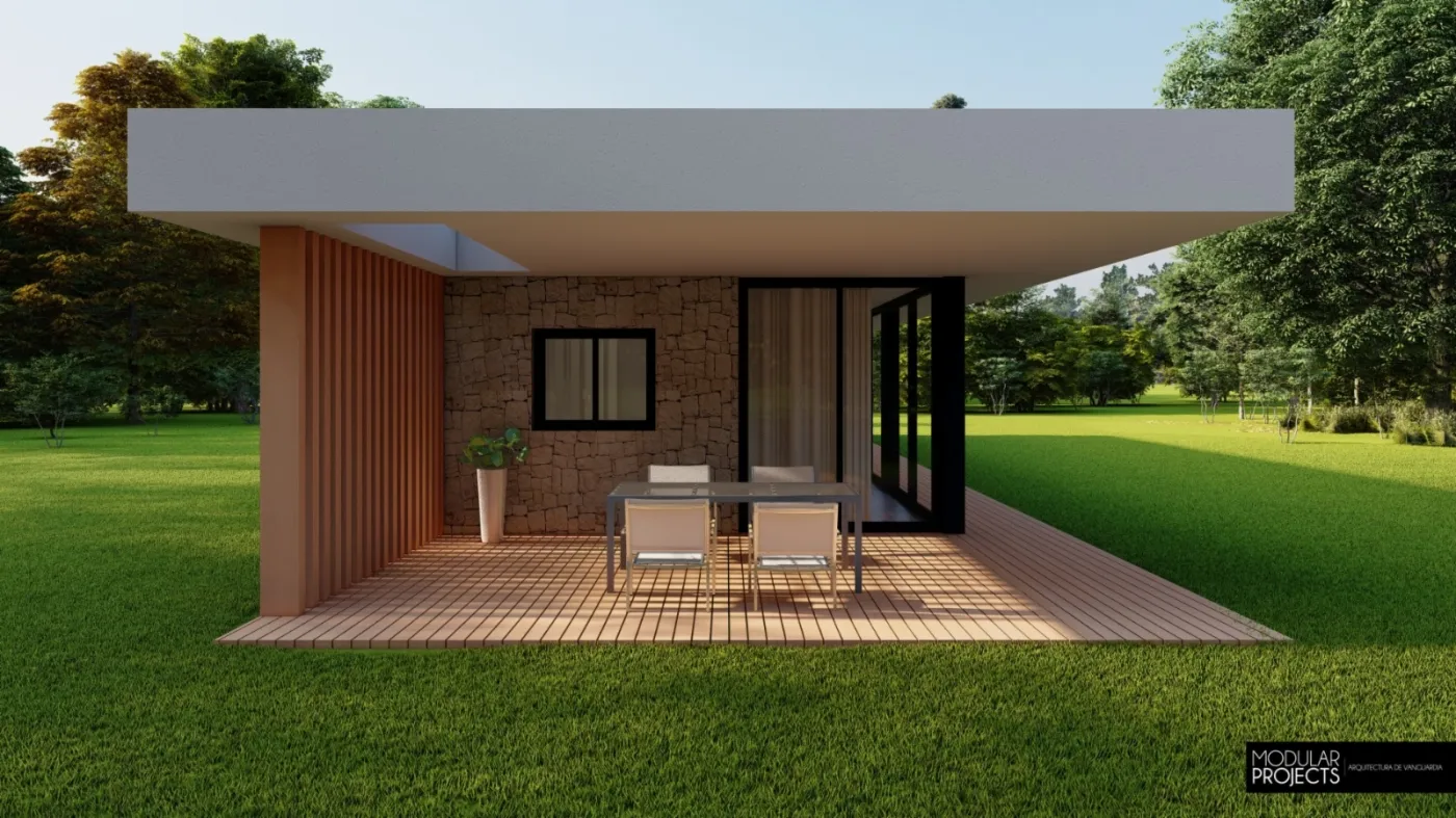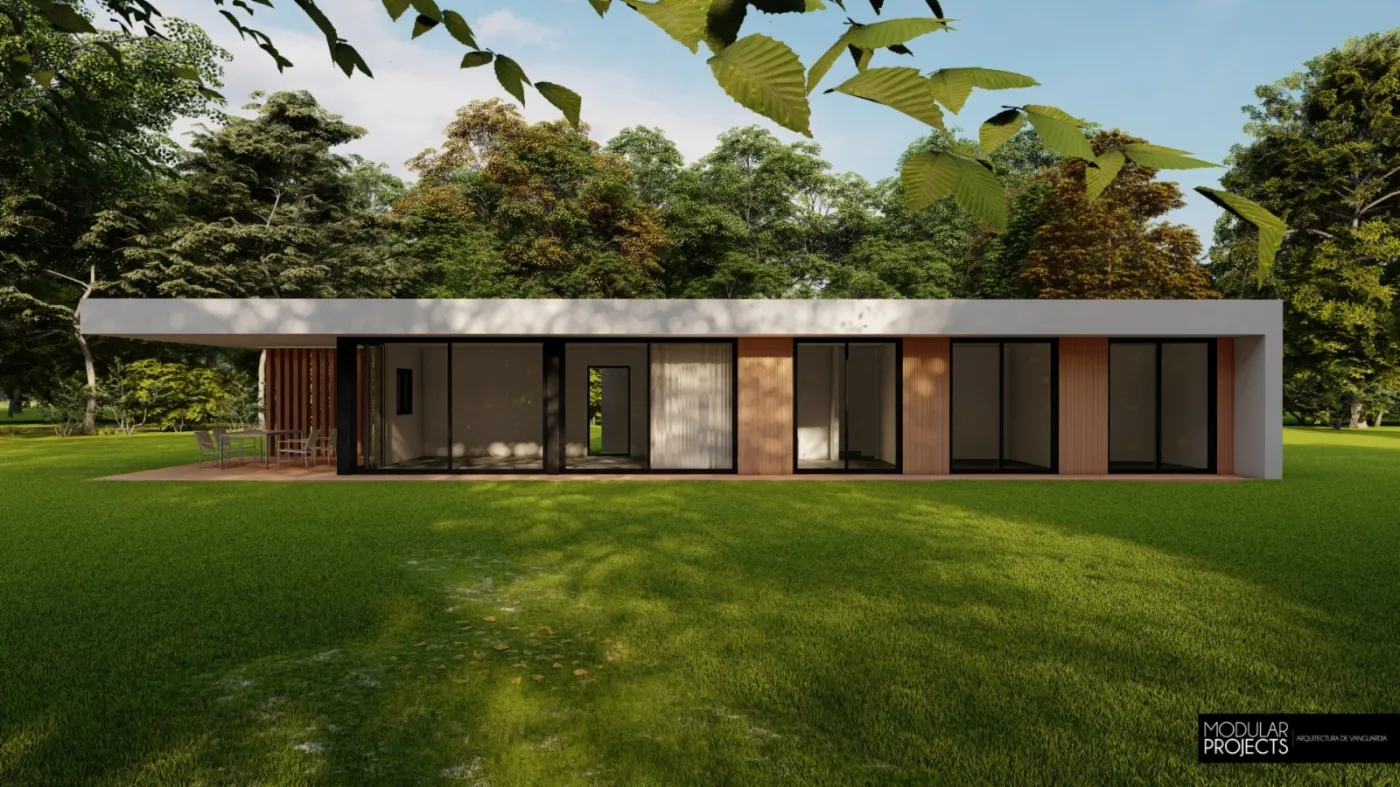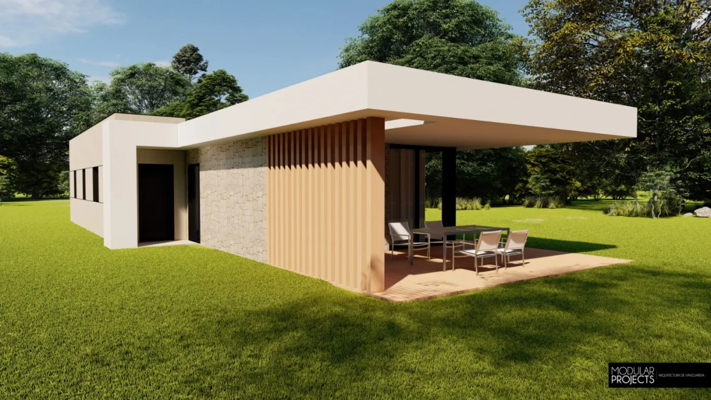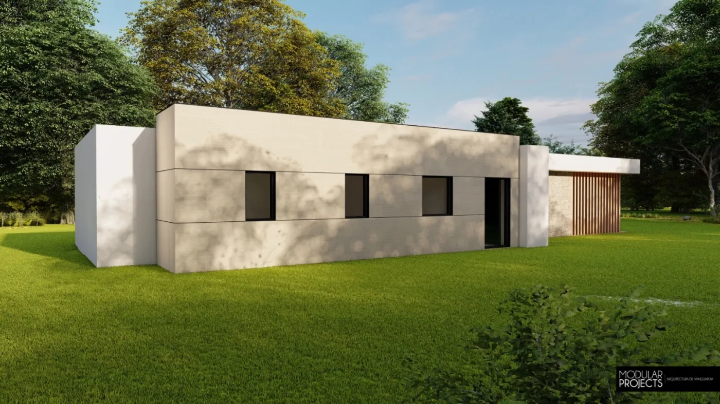 Nueva Project 120, vivienda de 120 m2 en una sola planta con 3 dormitorios dobles y tres baños completos. Con un diseño especular combinado el Sate con nuestro característico alistonado de abeto.